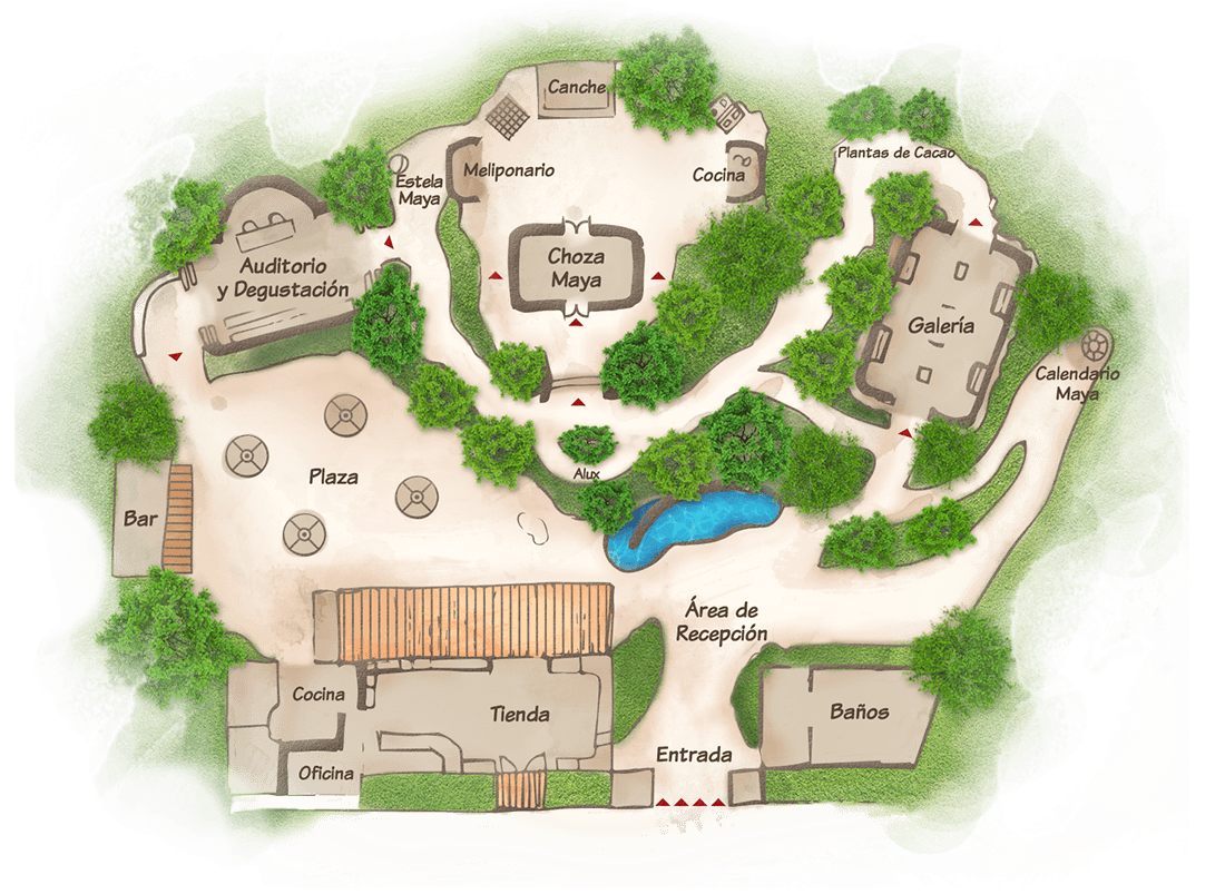 En este mapa interactivo puedes conocer todo lo que The Mayan Cacao Company tiene para ti. Sólo coloca el cursor sobre los atractivos del museo.
